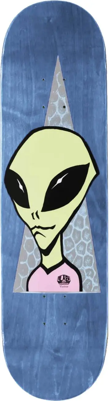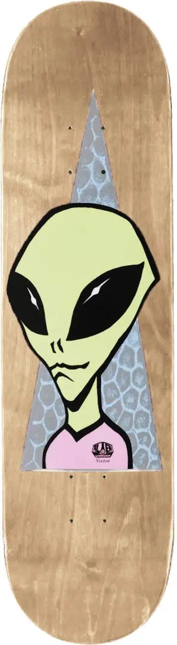 Alien Workshop Visitor series decks are a series of skateboard decks with a graphic of a friendly Visitor. The decks are made with AWS slick formula which means that the bottom is sublimated yielding endless slides.
