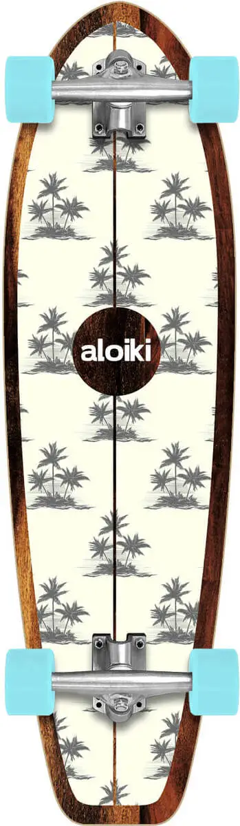 The Kailua is tight cruiser longboard from Aloiki. It is set up with narrow 4″ trucks mounted with 90A bushings for a smooth ride and an optimized power transfer. The soft wheels and the ABEC5 bearings will have you rolling nicely as well.