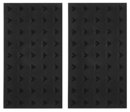 Our injection molded polyurethane studded ‘Prism’ stomp pad is designed and made for the harshest environments and weather conditions. The studs will enhance your snowskating with added grip and traction under your feet for maximum control and trick consistency. Easy to cut and stick directly onto your snowskate’s foam grip. Each pad includes two sheets with adhesive backing for a total of 90 studs.