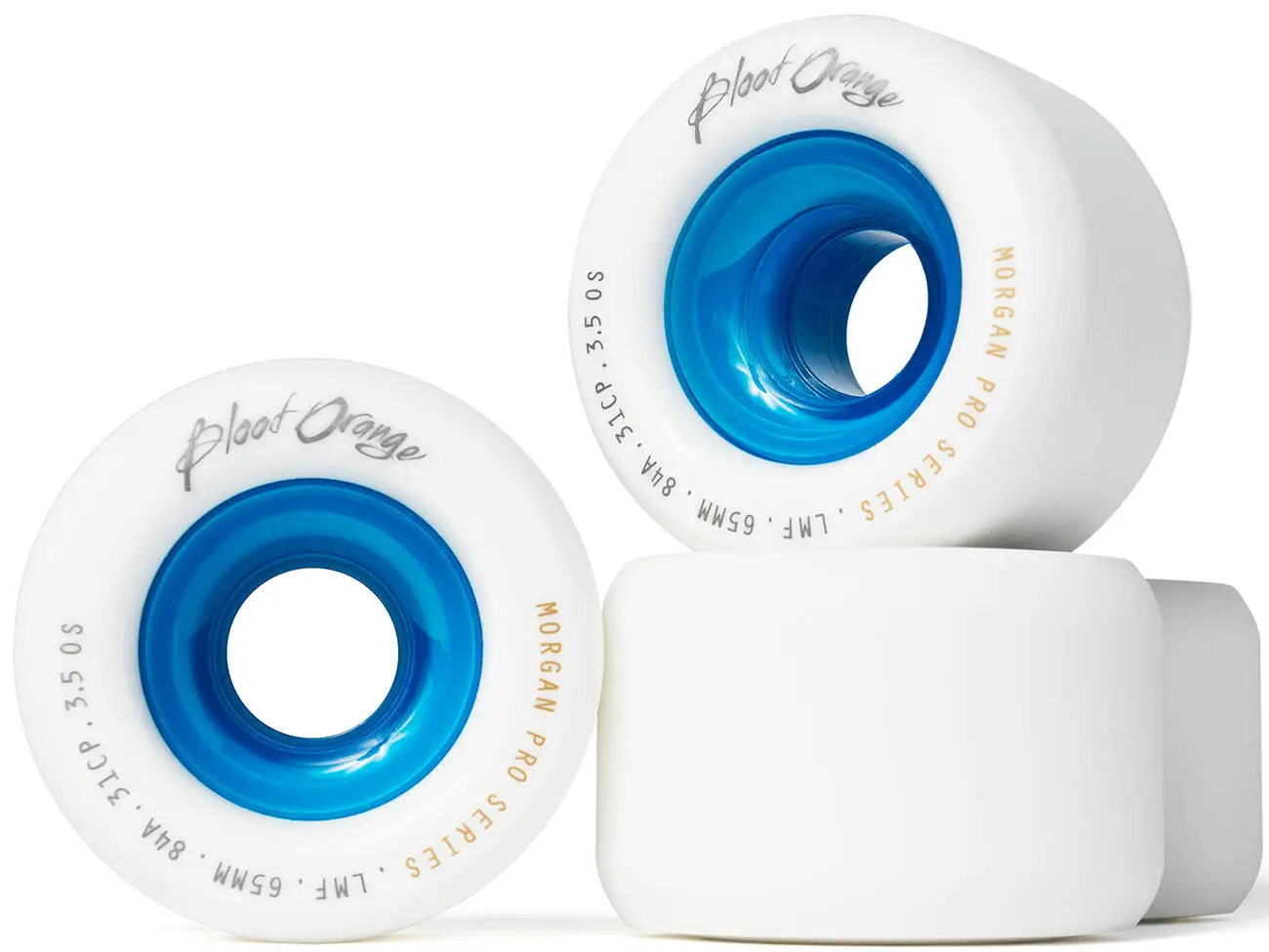 The 4-pack Blood Orange Morgan Pro 84A wheels are suitable for longboards. Built from high rebound urethane, these wheels will give you a great feel under your feet. They are cast from skateboard-friendly SHR-PU rubber (Super High Rebound) and enable you to go fast while damping vibrations at the same time.