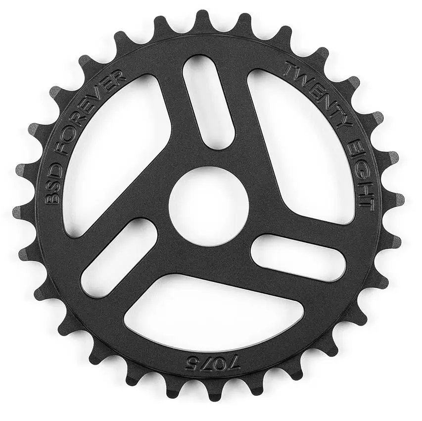 This tri-spoked sprocket by BSD is made from light and strong CNC’d aluminum material. It comes with 8mm thick edges for extra strength, and 6mm in the center to save weight.