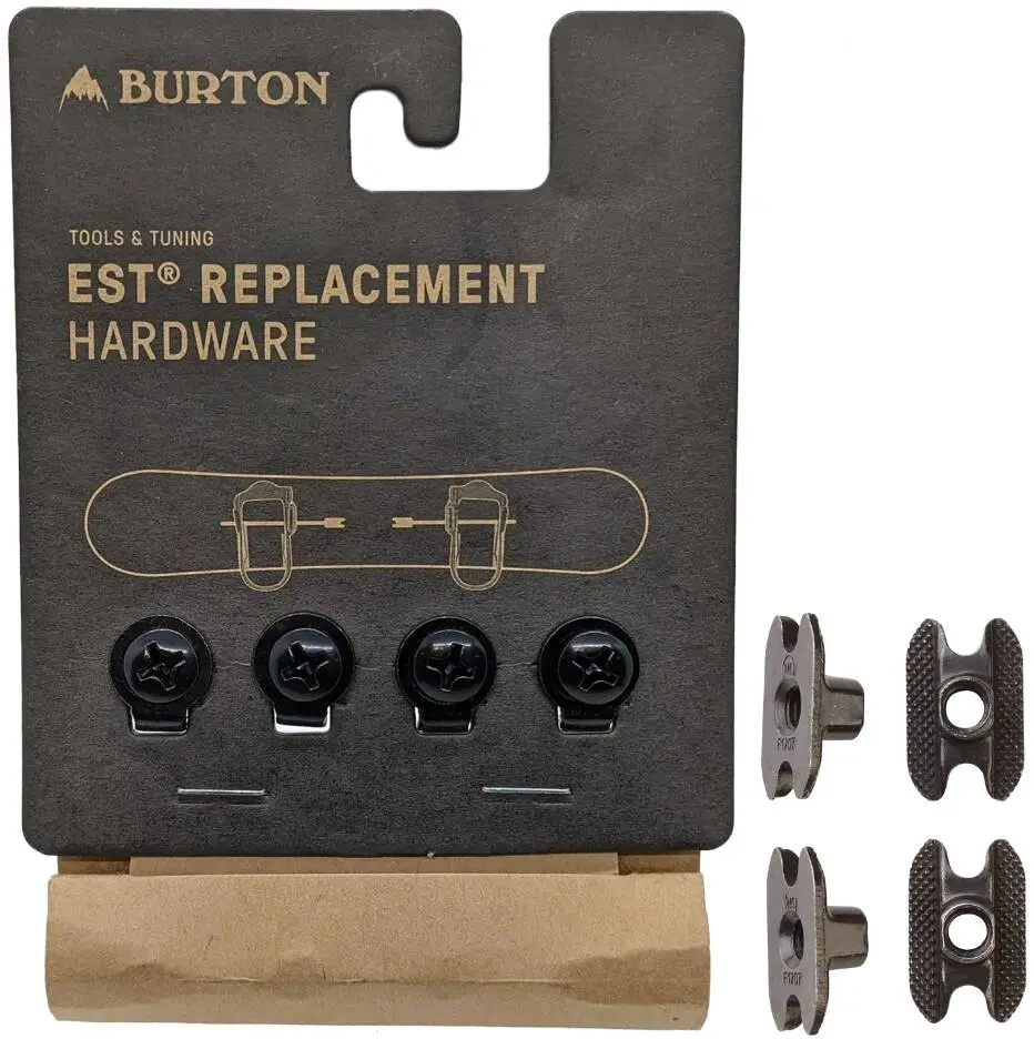 Spare part set of every washer, screw, and insert needed to mount your Burton EST bindings to the Channel mountingsystem. Includes Four M6x13 Screws with Four Tabbed Washers and Four Board Inserts.