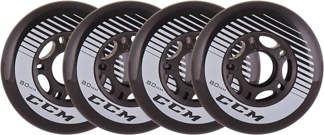 Great wheels for Roller Hockey produced by CCM. Available in either 76mm or 80mm, both in 82A. Sold in sets of 4 wheels.