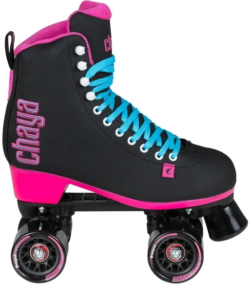 These retro quad roller skates have a classic figure skate design with a high-cut PU-leather boot and figure skate outsole for maximum stability. The EVA foam padding and composite material plate/trucks with steel kingpins provide comfort, stability, and reassure longevity of the skate.