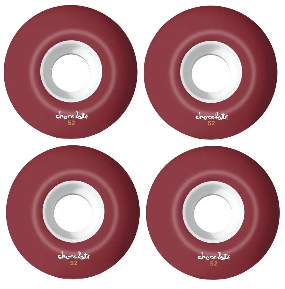 The 4-pack Chocolate OG Chunk Staple wheels are suitable for skateboards. The small 50 and 52 mm wheels are your street setup for pop and good balance. Whereas the medium-sized 54 mm wheels will serve you as an all-arounder for street, park and small ramps.