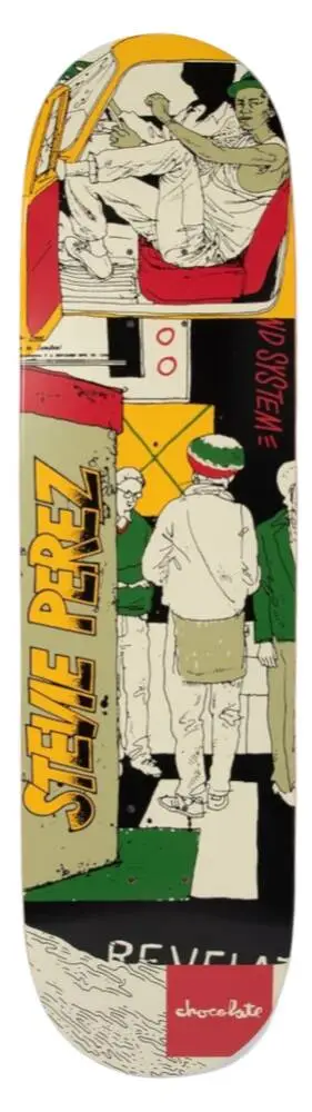 The Chocolate Sound System is a well-performing skateboard deck. It is made of a combination of 7-ply North American Maple and Epoxy and Wood. The North American maple adds pop and durability to your board.