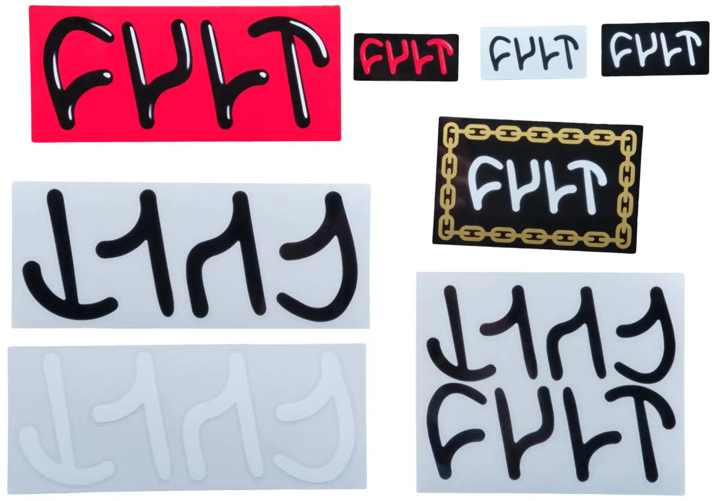 A fine pack of sticky goodness from your friendly neighborhood BMX brand Cult. 8 pieces of beauty ready to get stuck on your frame, bars, cars, house or where ever you may find the need for some Cult loveliness.