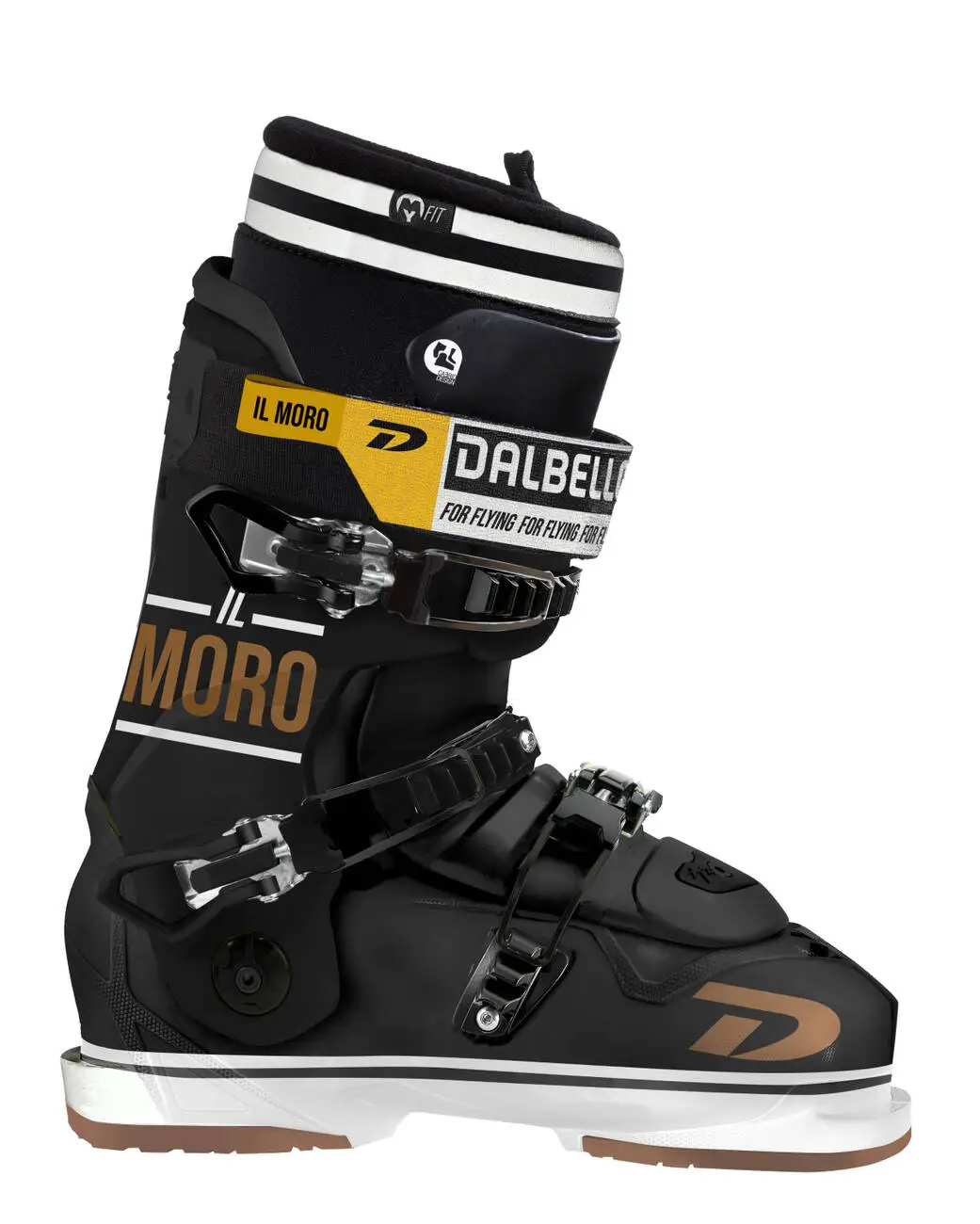 The Dalbello Il Moro are high performance ski boots for advanced riders. Having a boot with a flex of 120 should be your choice if you would like fast response and direct transmission from the boot to the skis, and more technical maneuvers.