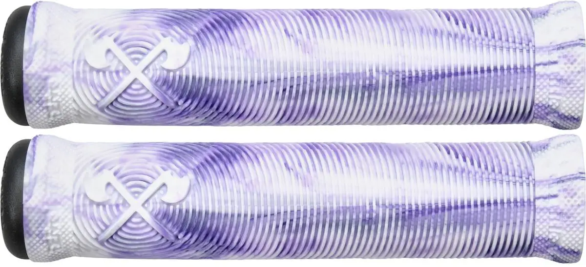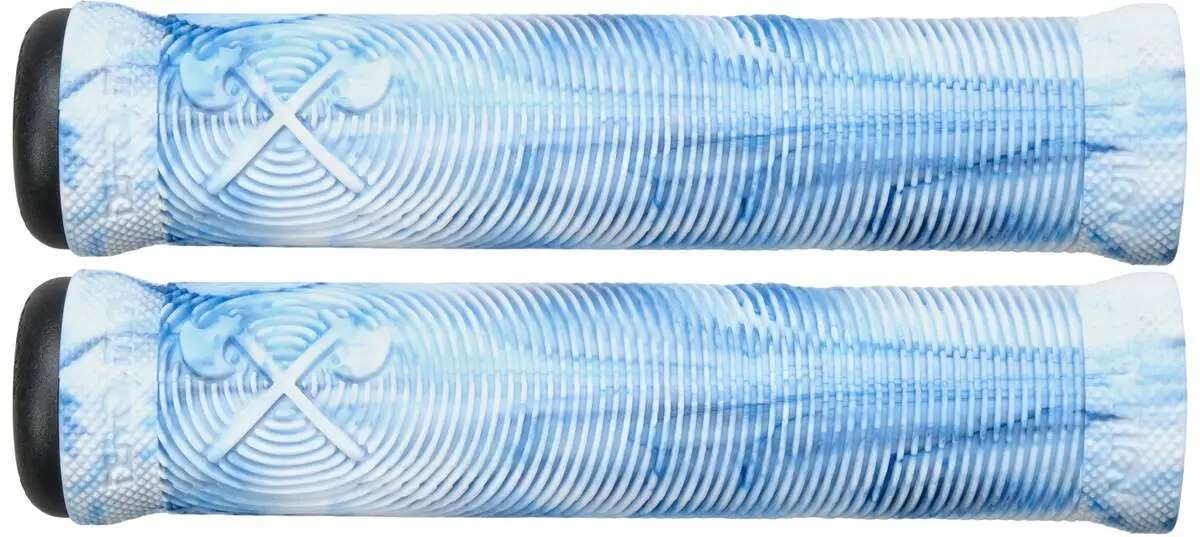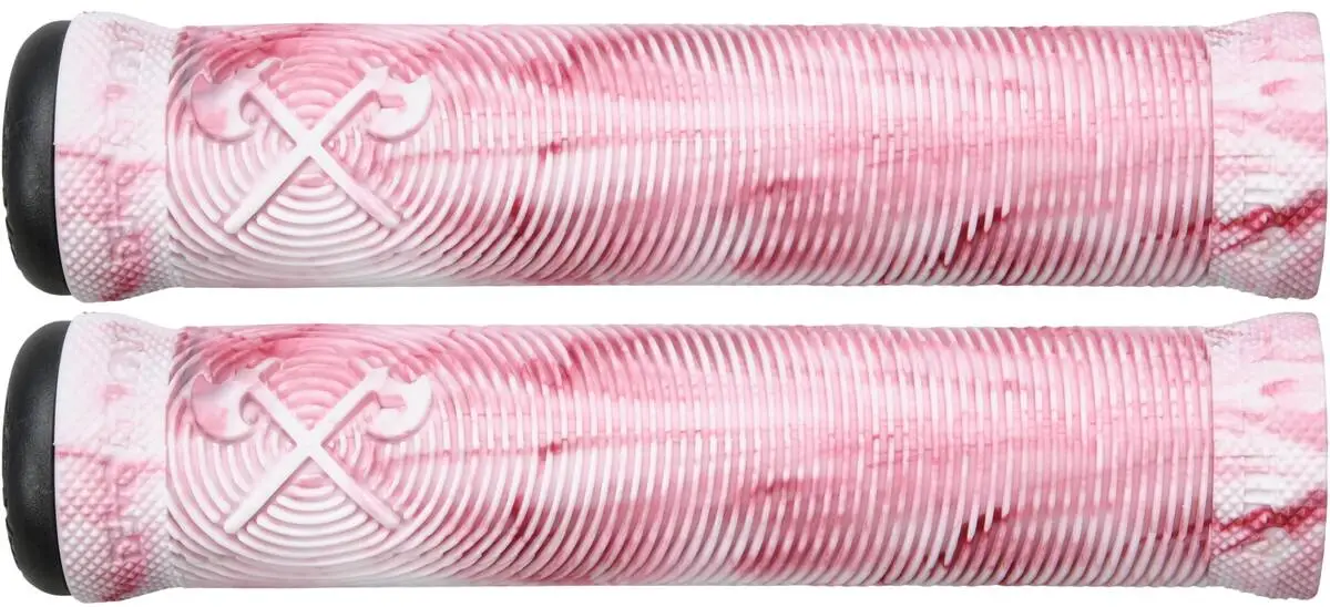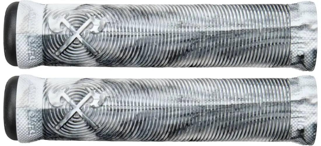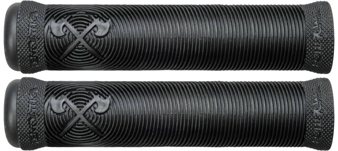 The Demolition Axes are freestyle BMX grips with a lot of value for money. When you go for flangeless grips, you can be sure that nothing will get in the way of your barspins. With a length of 14.8 cm, these long Demolition grips will appeal to many riders, because they have plenty of space to move the hands around when performing tricks. The soft rubber material gives a nice comfy grip for cruising or trick sessions. You get a set of bar-ends that are compatible with aluminum, steel and grade 9 titanium included with the grips, so you can round off your bar and extend the lifespan of both your bar and your new set of grips.