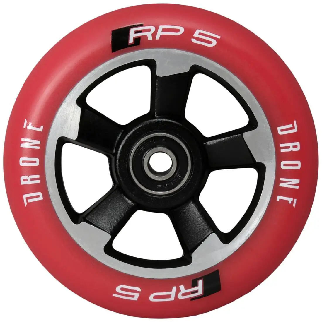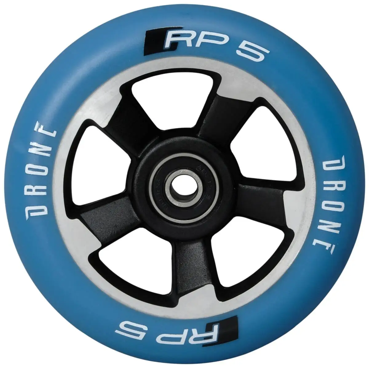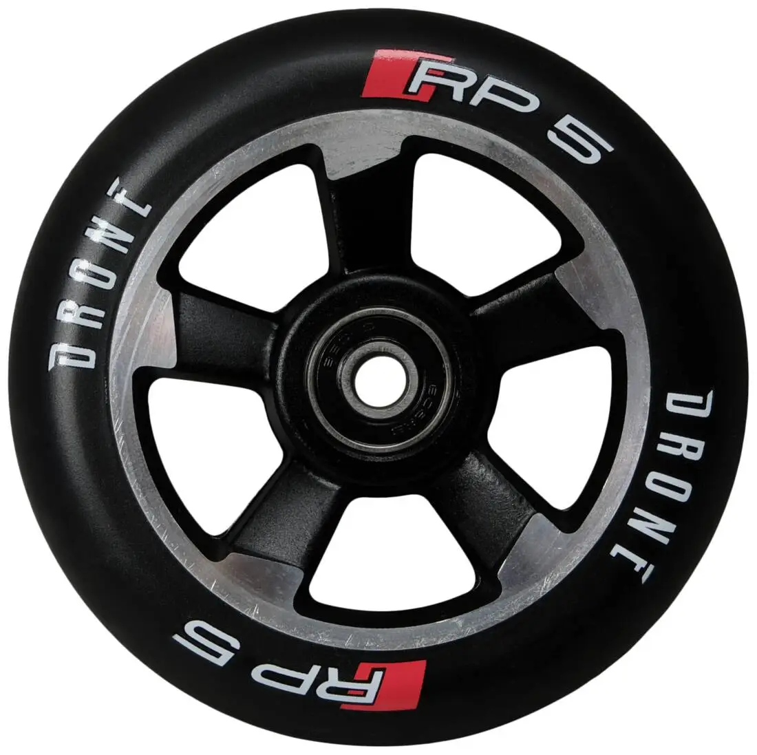 This is the RP5 pro scooter wheel from the brand Drone. Having a spoked core that is made of 6061 aluminum, the wheel is classic looking and it has all the right properties such as low weight and durability. The grippy PU formula with high rebound and good traction for all your tricks is ready to be taken to the street or the skatepark. Moreover the durometer of 88A attests to the wheel’s perfect mix of grip and speed, making it great for both street and park riding. Drone has designed the wheel with a round profile to give you a stable wheel with less friction and thereby adding speed to your performances.