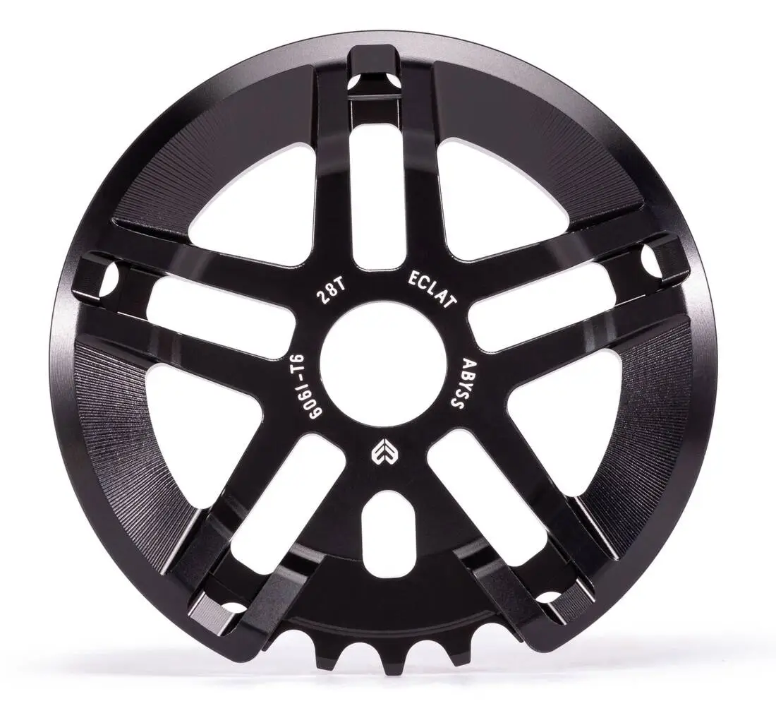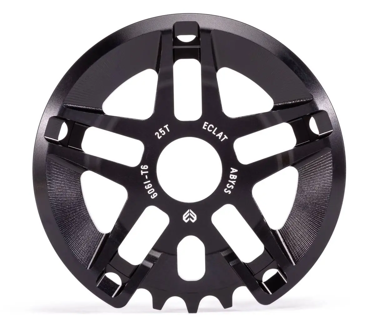 The Éclat Abyss Guard Freestyle is a high-performance BMX sprocket for freestyle bikes. It comes in 25T and 28T versions. Pick a larger sprocket with more teeth if you wish to gain higher top speeds. However, if you want more effortless pedaling and better acceleration, then the smaller sprocket should be your choice. This Éclat sprocket is designed with a 24mm bore and a bolt drive hole, but thanks to the included adapters, it is suitable for 19mm and 22mm mounting as well.