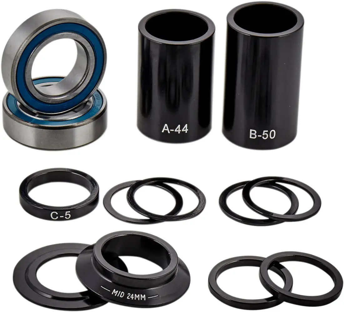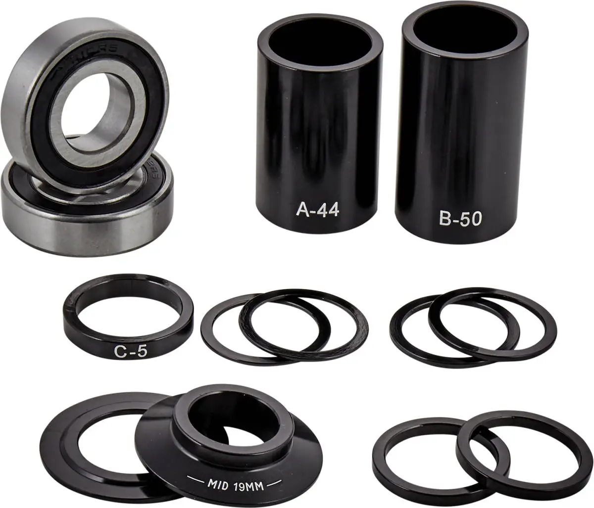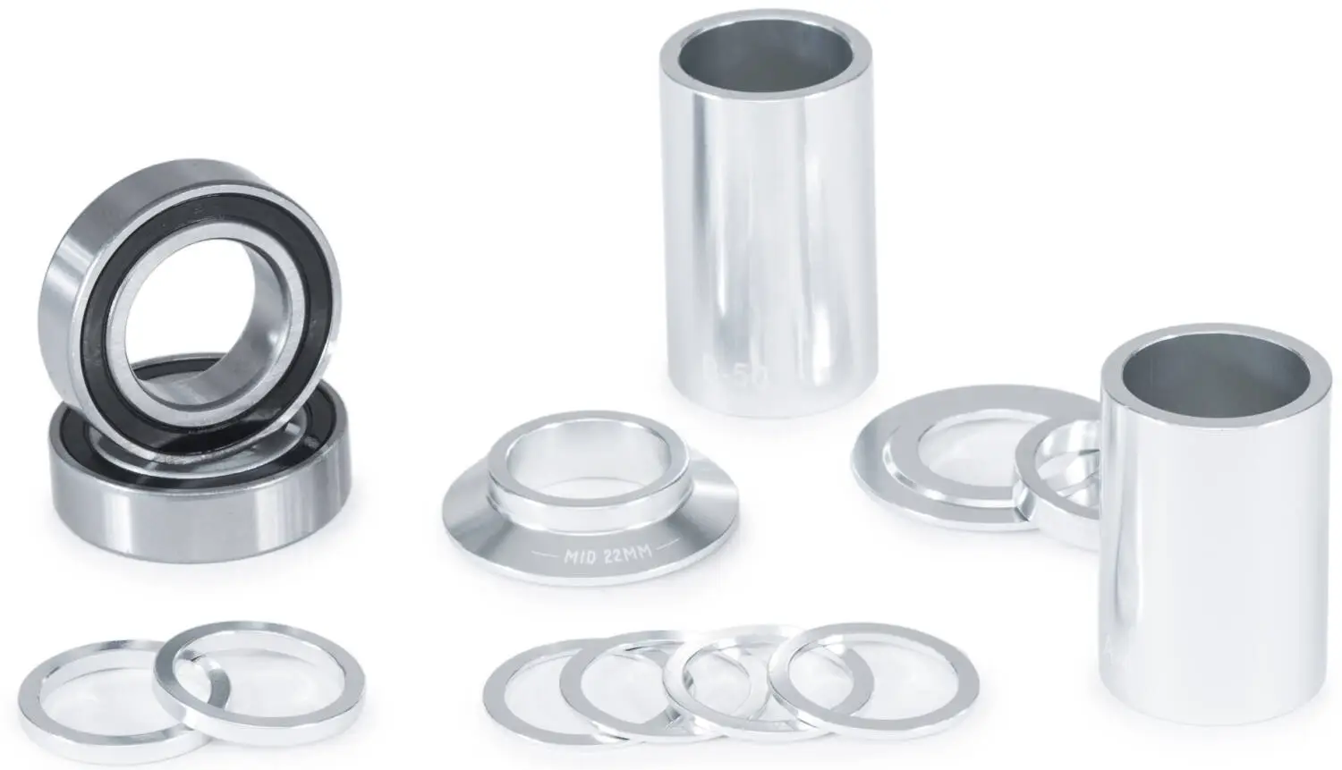Sealed bearings from Eclat for frames with MID bottom bracket. Includes cones and spacers to adjust the chain line.