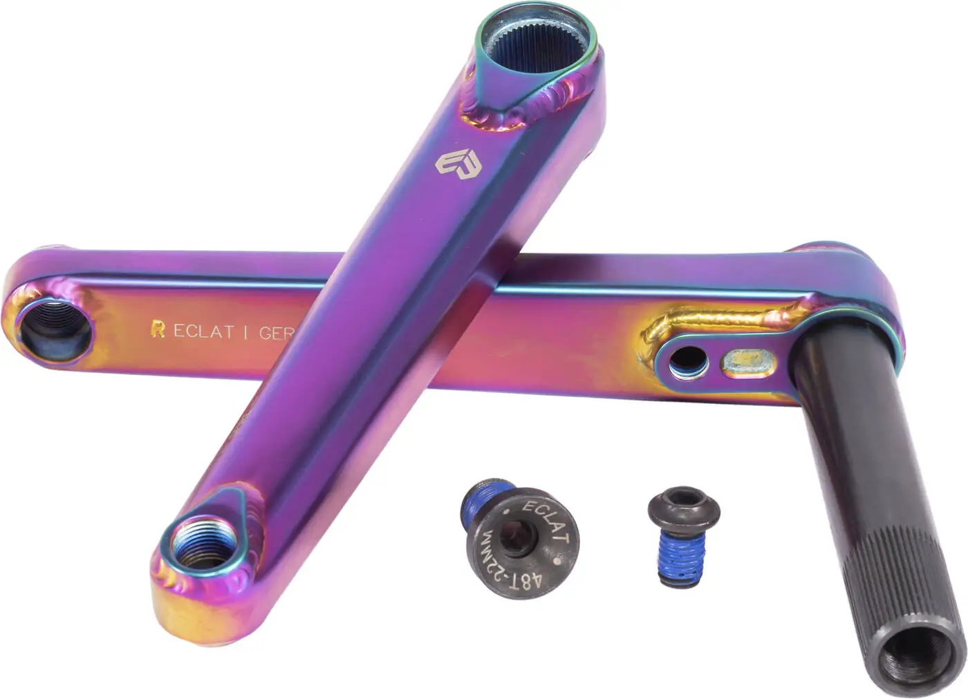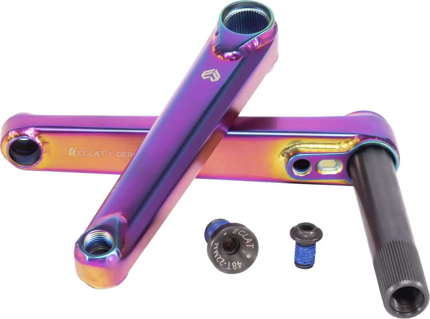 The Spire BMX Cranks by Éclat is designed as a 2.5-piece system. The 2.5-piece system is similar to a 3-piece system but easier to install and only adjustable from one side. The Spire is built with super-strong boxed arms, increasing stiffness and dent resistance.