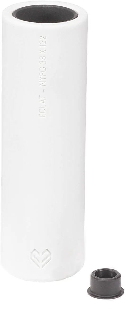The Venom Pegs from Eclat come with dimensions from standard steel pegs, for freestyle BMX, but with a classic plastic sleeve construction. A slim, yet strong, chrome steel inner covered in an ample amount of a slippery low-friction nylon provides the best of both worlds.