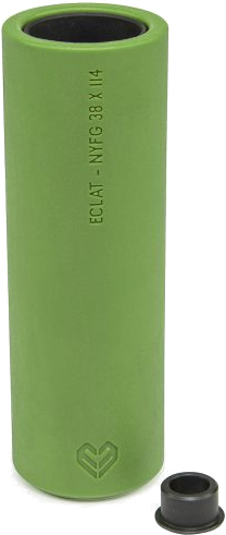 The Venom Pegs from Eclat come with dimensions from standard steel pegs, for freestyle BMX, but with a classic plastic sleeve construction. A slim, yet strong, chrome steel inner covered in an ample amount of a slippery low-friction nylon provides the best of both worlds.