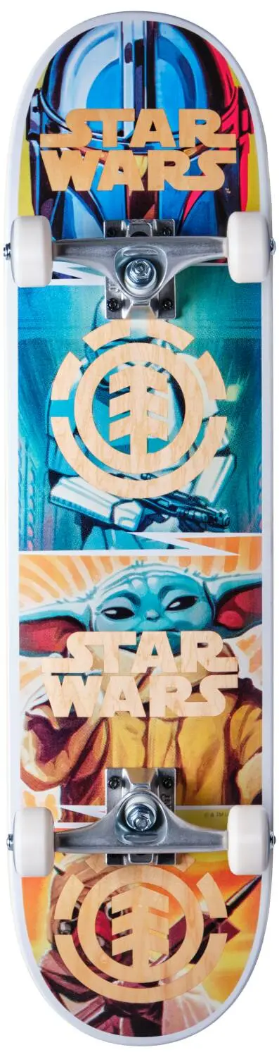 Join forces with the collaboration between Element Skateboards and Star Wars with a complete skateboard. The graphic elements are taken from the cult tv-series The Mandalorian with the adorable Yoda Child.