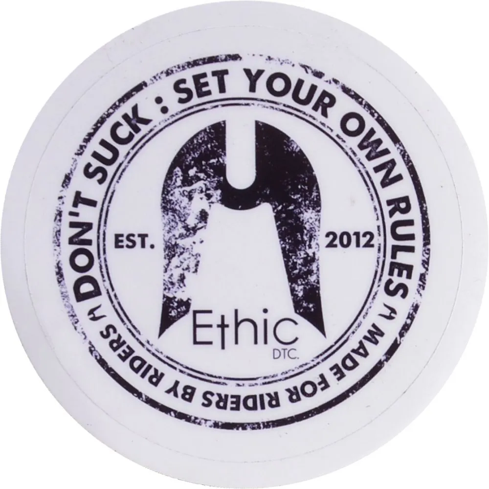 Original Ethic sticker. Don’t Suck: Set your own rules. Made for riders by riders. Circle shaped 6cm x 6cm.
