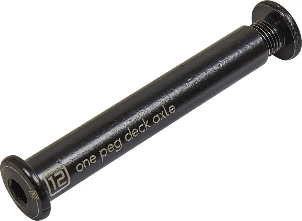 Deck axle to go with the Iconoclast deck from Ethic for single-peg setups. 12mm axle so it will not work with any other deck. Thanks to this wide diameter you get a lot stronger and more durable axle.