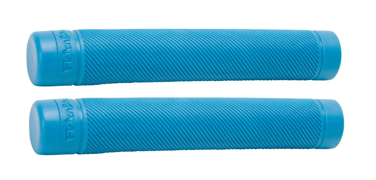 The Fiction Troop are freestyle BMX grips with a lot of value for money. Having flangeless grips will help you to grab your bar confidently when doing barspins. With a length of 16 cm, these long Fiction grips will appeal to many riders, because they have plenty of space to move the hands around when performing tricks. The medium hardness of the rubber gives a great mix of comfort and durability. To round off your bar and extend the lifespan of both the bar and grips, you get a set of bar-ends that are compatible with aluminum, steel and grade 9 titanium bars along with the grips.