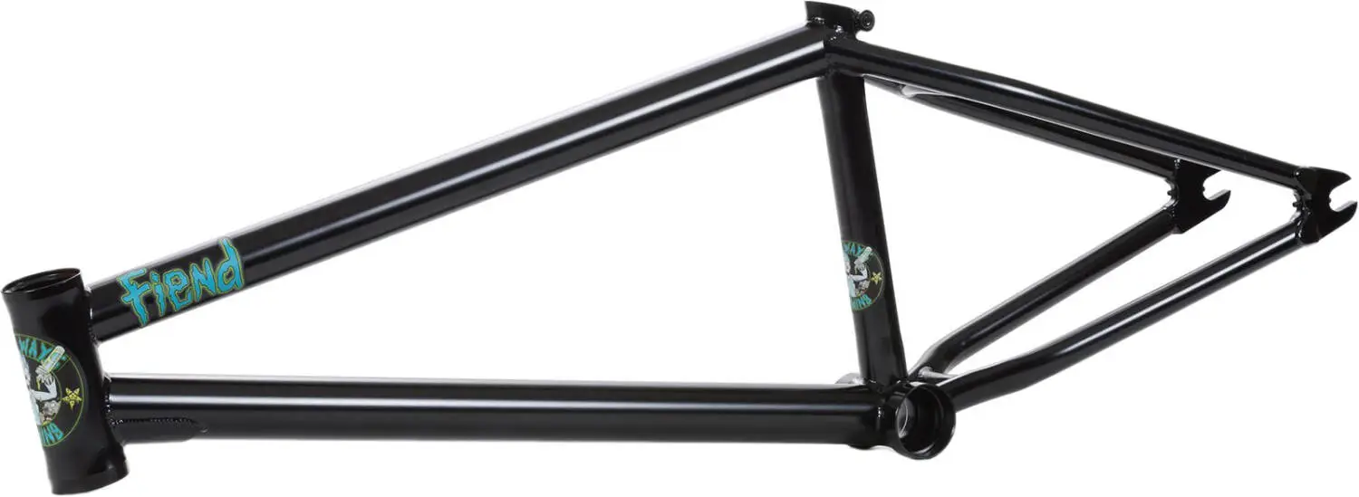 The Fiend Reynolds bmx frame is Garrett Reynolds’s signature model made from 4130 chromoly with no brake mounts or cable guides to match Garrett’s riding style. The Reynolds bmx frame features a heat-treated integrated headtube, ovalized downtube to prevent denting, top and downtube gussets, heat-treated Mid BB shell, externally machined seattube with integrated seat post clamp, tapered seatstays, dent resistant ovalized chainstays and 6mm thick dropouts.