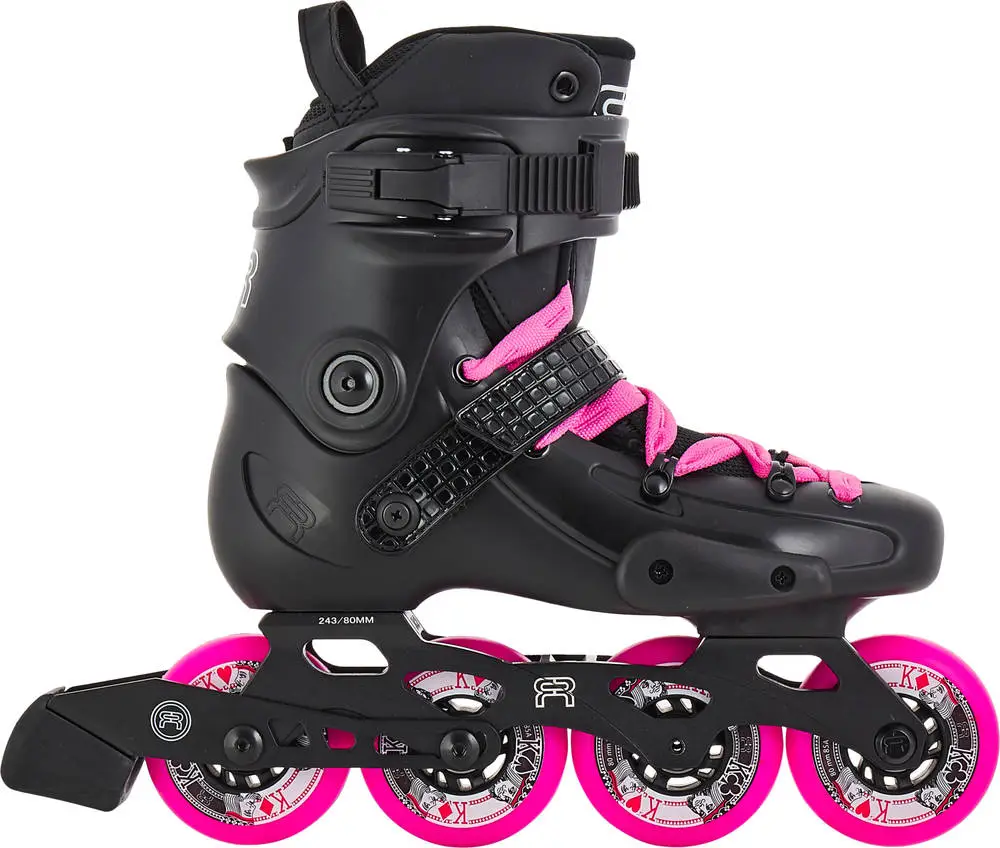 The FRW is a freeskate dedicated girls. With a strong shell, a narrower fit and a powerstrap, this free skate provide a quick fit and good support. The FR freeskate for girls are perfect for freeride, freestyle and city skating due to is Street King 80mm 84A wheels.