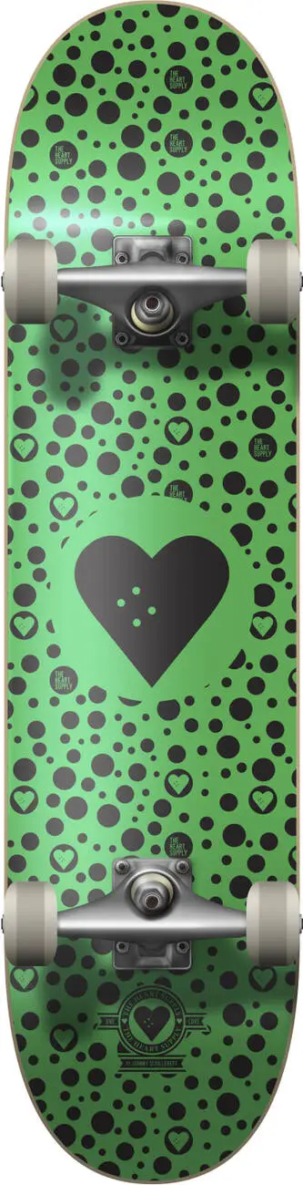The Heart Supply Round Logo skateboard is suited for all levels of skill, just waiting for you to take it to the streets or the skatepark. You will get a versatile board, which you can take both to the streets and the ramps. It comes with a double kick-tail deck that allows you to pop your tricks with either end of the board. Being already fully assembled with all the right parts, this complete board is pretty much ready to ride right out of the box.