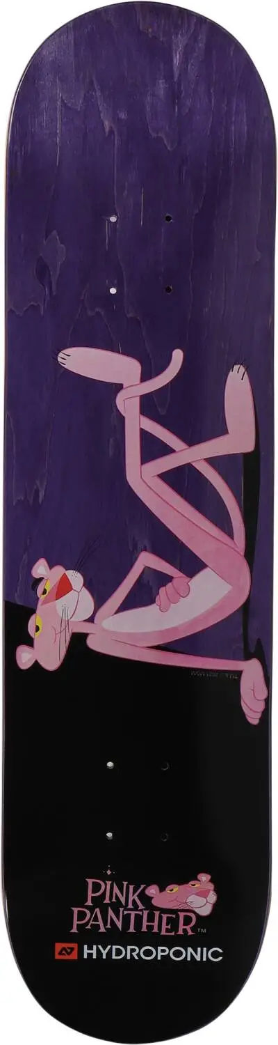 The Hydroponic x Pink Panther is a well-performing skateboard deck. It is made of a combination of 7-ply Canadian maple and Epoxy. The hard rock maple provides your deck with added pop and longevity.