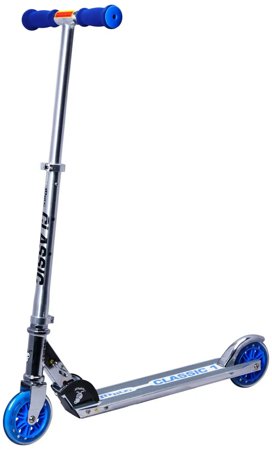 Foldable kids scooter with big wheels for a comfortable ride. Easy to ride but also easy to fold and take with you. Height adjustable handlebar.