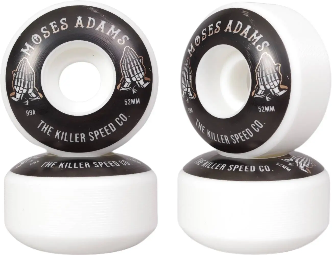 The 4-pack Killer Moses Adams Pro wheels are suitable for skateboards. Built from high rebound urethane, these wheels will give you a great feel under your feet. These small 52 mm wheels ideal for street skateboarding make it easier for you to do tricks where solid pop and an optimized balance is required.
