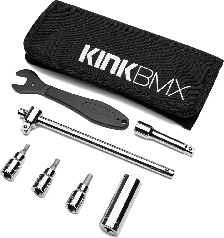 The Survival Toolkit by Kink includes the essential tools you’ll need when working on your bike. The tool is made from high-grade chrome Vanadium steel and comes in a polyester pouch pocket to keep things organized. You can also add more tools to the kit in case it’s not included.