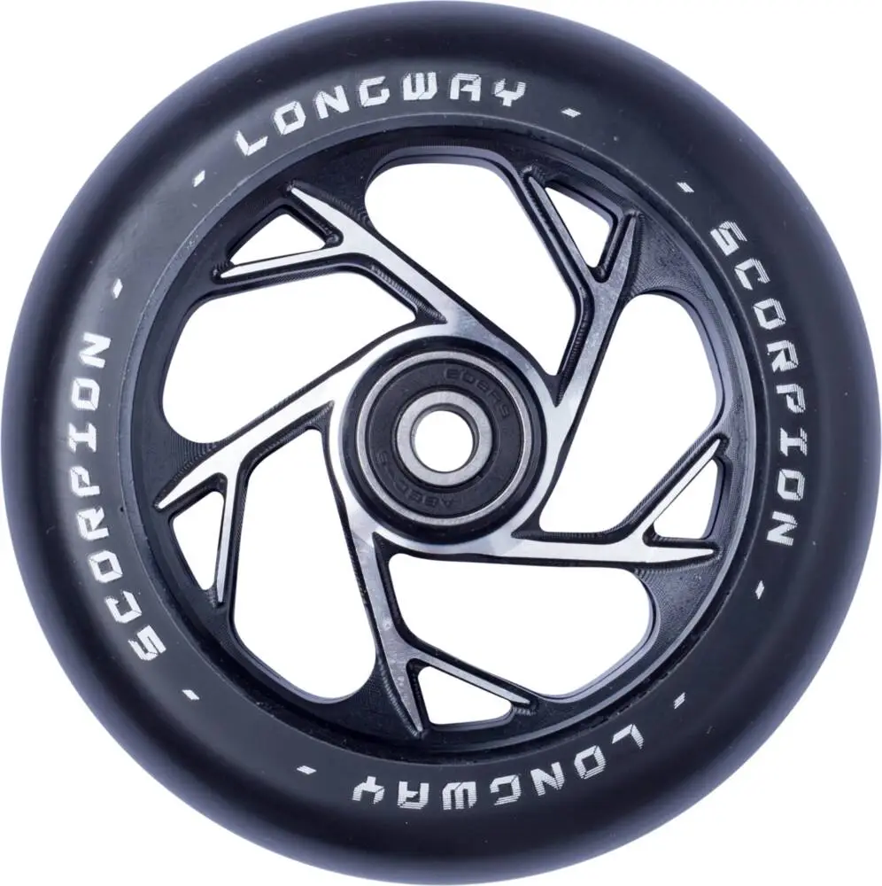 The Scorpion wheel by Longway is a spoked pro scooter wheel in a classic 110mm design, fully equipped with fast and speedy ABEC-9 bearings.