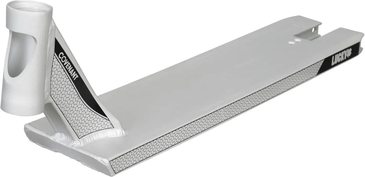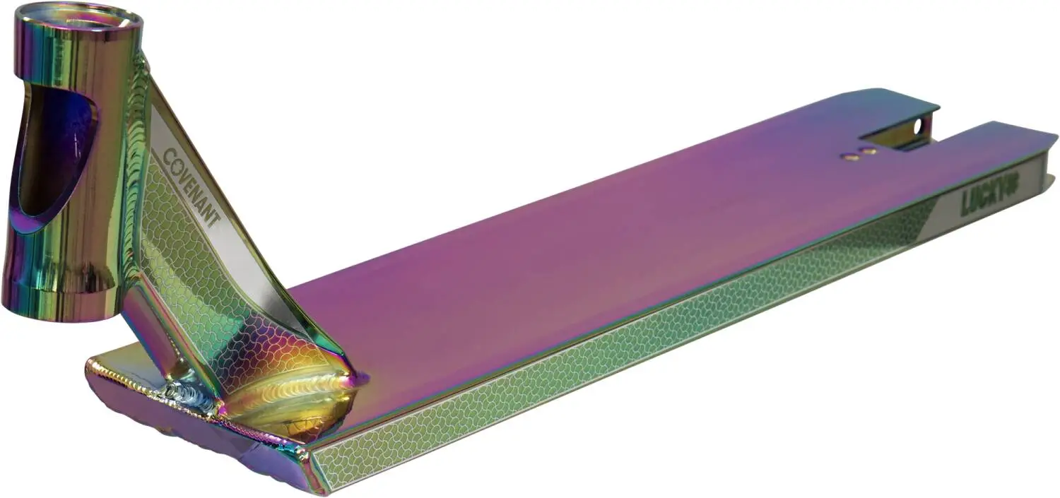 The Lucky Covenant 2022 is a well-performing pro scooter deck, and it is made from light Aluminum material. If parks are your passion and you’re into whip and flare tricks, then the peg-cut shape is for you. As the name suggests, it has the perfect shape to host pegs for relentless grinds. This Lucky scooter deck is compatible with 110mm, 115mm and 120mm wheels.
