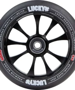 120mm scooter wheel featuring Lucky Rebound Technology. A combination of high-performance urethane, a new pouring process and a proprietary curing method which gives these pro scooter wheels a grippy, fast, and buttery roll.
