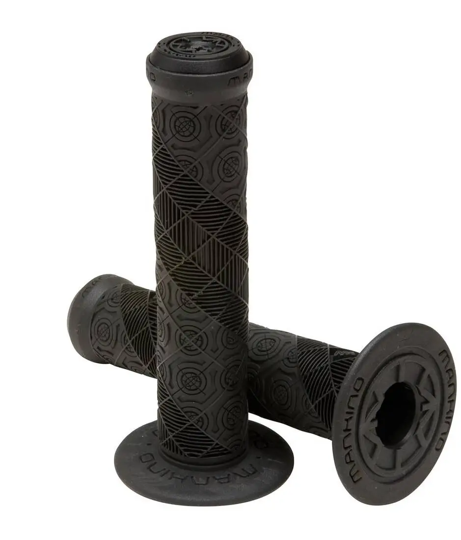 The Mankind Asadi Phase are freestyle BMX grips with a lot of value for money. Flanges provide an easy grip and a lot of control, but they can sometimes get in the way when you perform barspins. Kids or people with smaller hands will be pleased with these short Mankind grips measuring only 12 cm. The medium hardness of the rubber gives a great mix of comfort and durability. You get a set of bar-ends that are compatible with aluminum included with the grips, so you can round off your bar and extend the lifespan of both your bar and your new set of grips.
