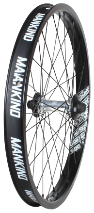 This is the Mankind Vision 20″ front wheel for freestyle BMX bikes. With the double walled rim on the Vision 20″, Mankind has aimed to provide strong yet light wheels, so riders can do tricks and jumps without bending the rims easily. Sealed bearings require very little maintenance and are resistant to dirt, making this Mankind front wheel perfect for outdoor use.
