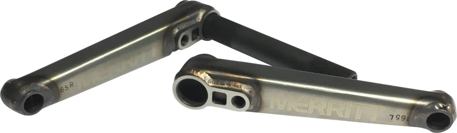 The Merrit Battle Crank is built for strength and durability. The Battle crank is made of chromoly steel and they are combined with a hollow 22mm spindle. The spindle bosses are angle cut and ready to receive the ankle saving rubber plugs included in the package.