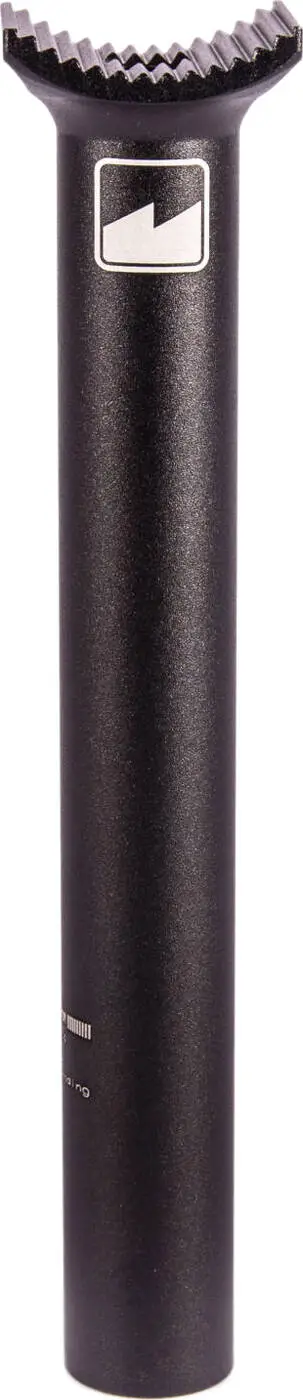 This is a lightweight forged aluminum Pivotal BMX seat post from Merritt that looks super clean and comes with a flat black or chrome finish with white logo details.