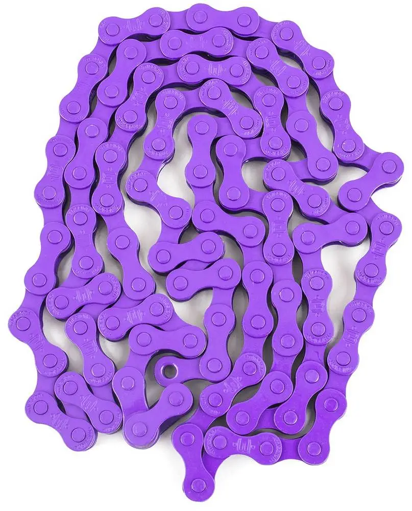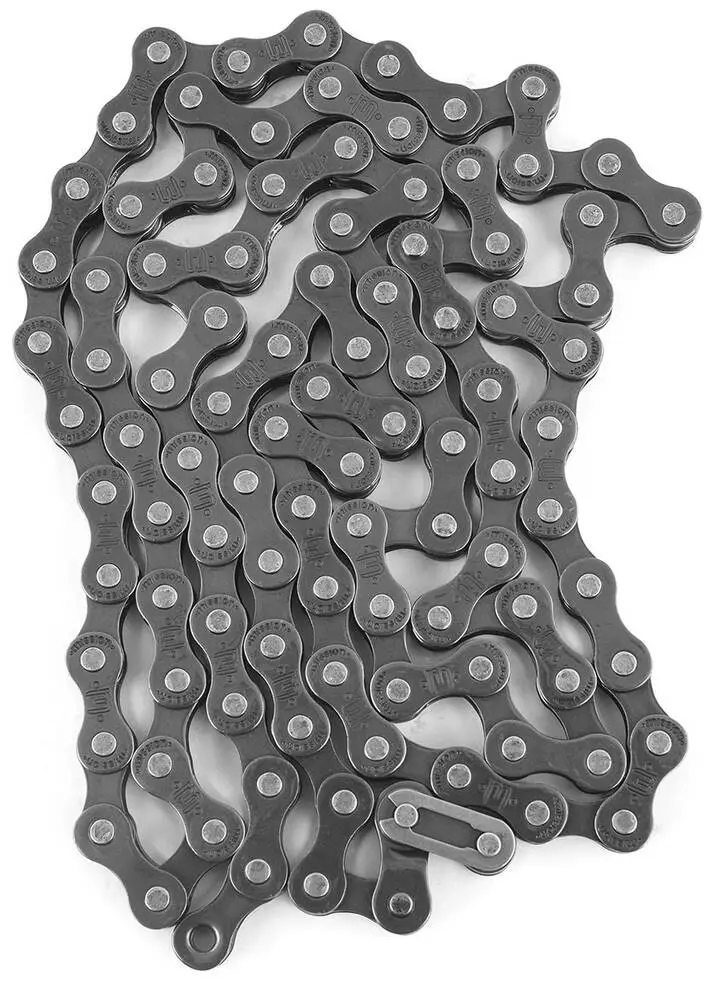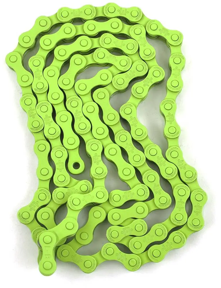 Teflon coated 1/8″ 410 single speed BMX chain from Mission BMX. It comes with a pre-installed master link and half link in order to fit as well as possible.