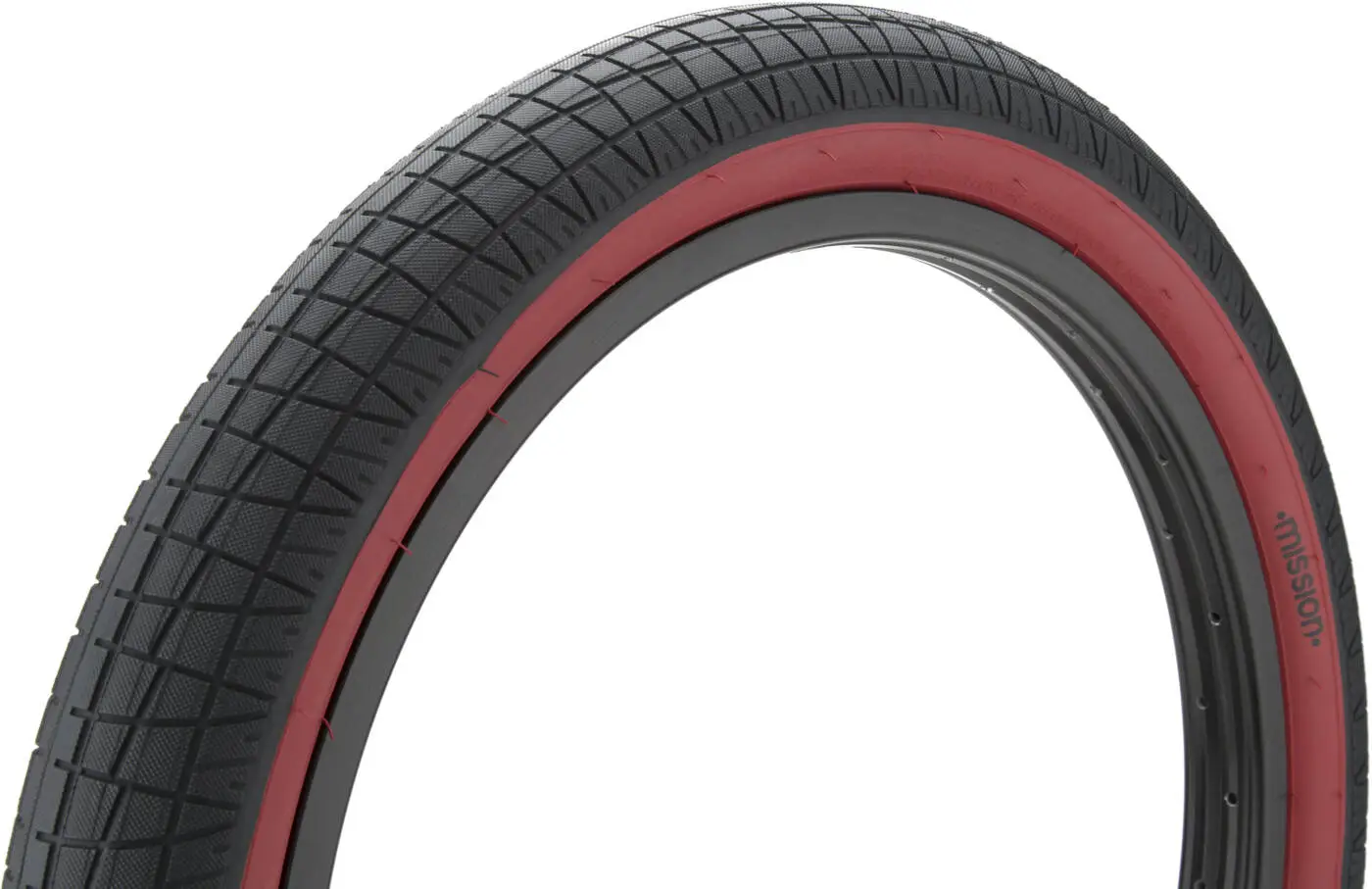 The Fleet 20″ BMX Tire by Mission is a great all-terrain tire for the versatile freestyle BMX rider. It’s designed with a smooth and fast center line and knobby sides for added traction, great for most park and street scenarios.