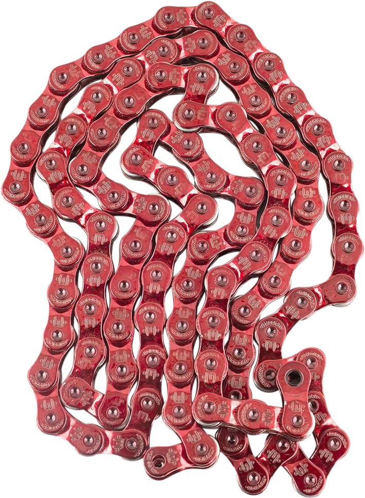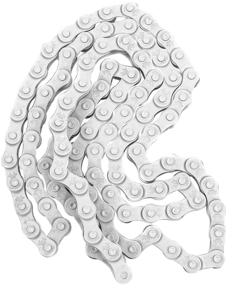 The Half-Link Chain by Mission BMX consists of 100 Teflon coated links. It allows easy length adjustment and fits nicely with smaller drivers, even though it is compatible with 8T drivers and up due to the rounded side plates.