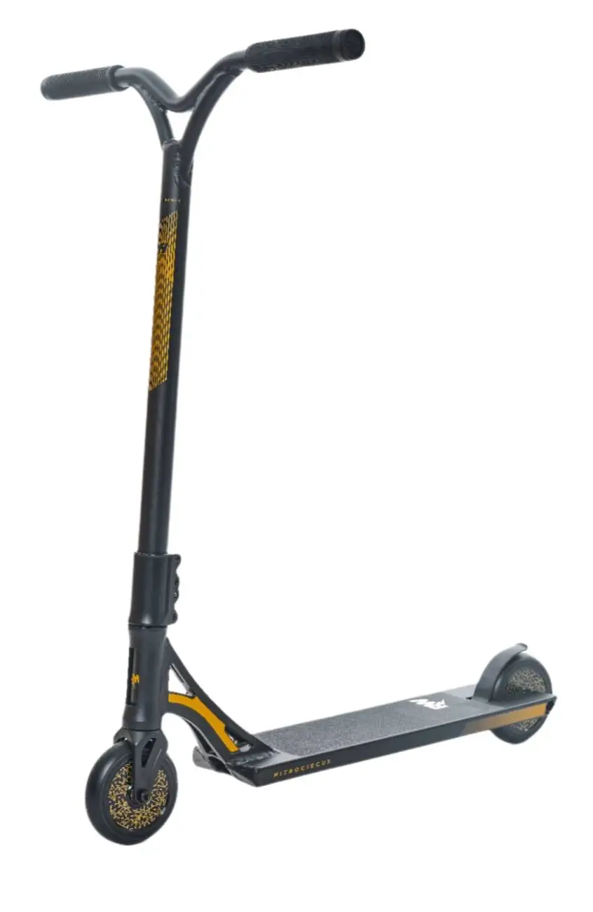 The stunt scooter Nitro Circus RW 500 is basically a kick scooter on steroids made for tricks in the streets. It is equipped with a lightweight aluminum bar, which will come in handy when you perform air tricks on the streets. In addition, the SCS compression system gives you a very smooth spin experience with easy maintenance.