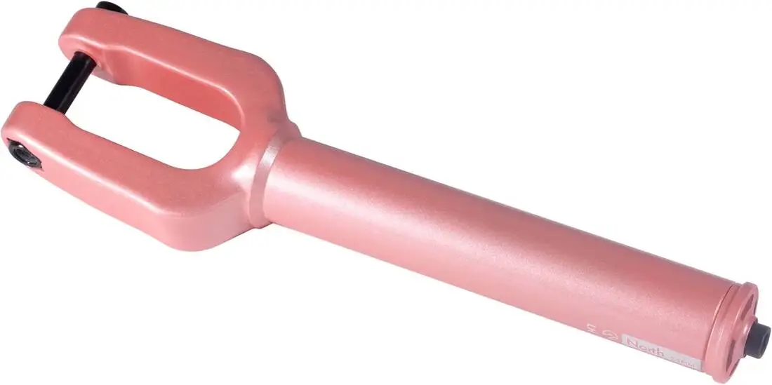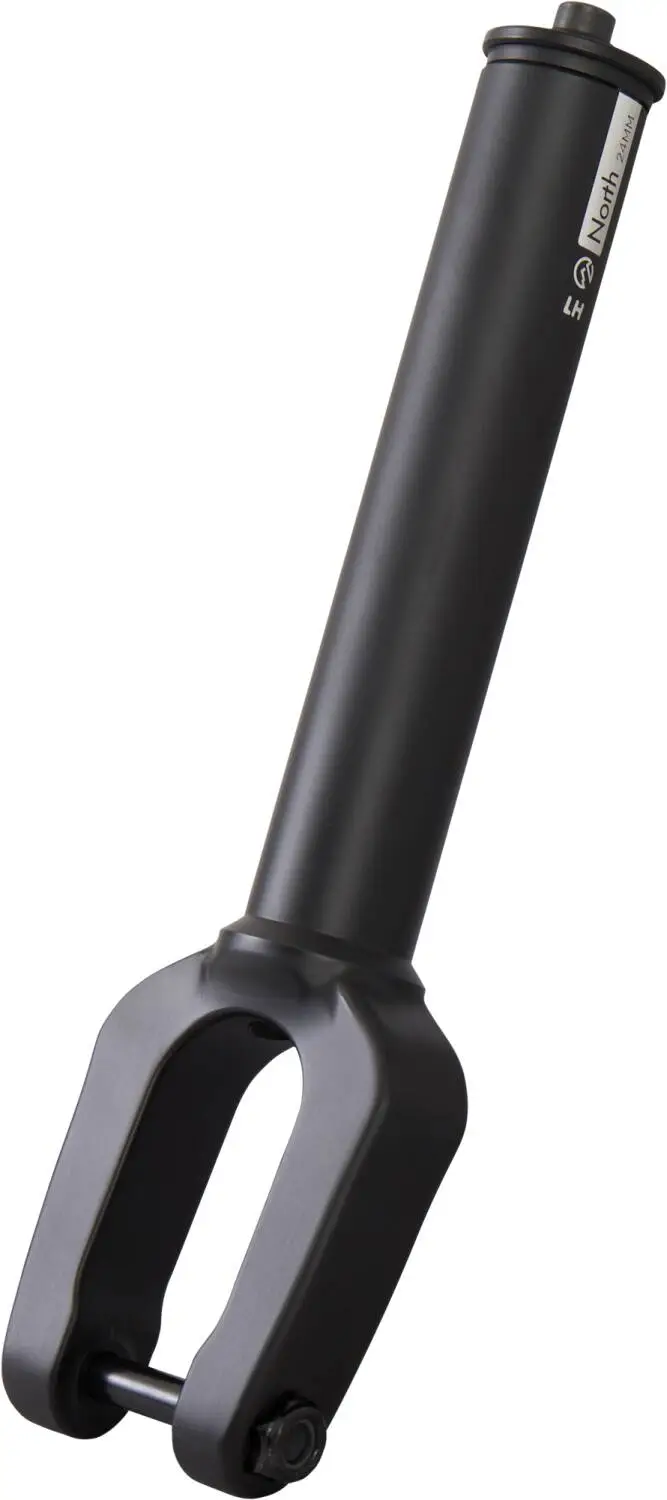 North LH is a well-performing one-piece pro scooter fork that can be used with various wheel diameters between 110mm and 120mm. This scooter fork is compatible with the most common wheel hub width, 24 mm, so you can accommodate most scooter wheels to it in regards to their width. The fork is threadless, which means its steerer tube has a smooth, thread-free outside surface and it needs a threadless headset to function.