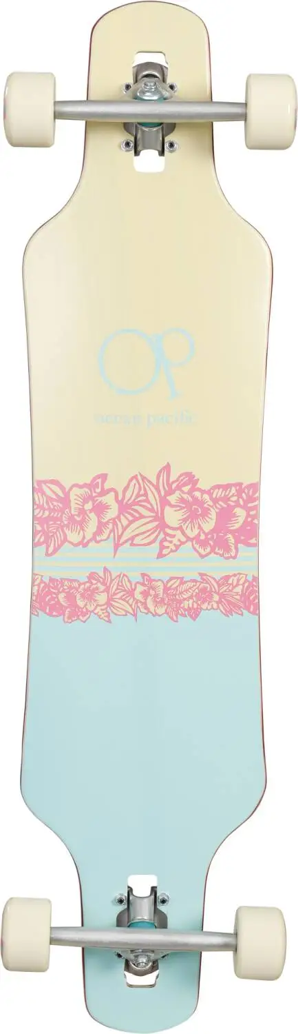 The Ocean Pacific Island longboard is a performance machine and a super durable board that will support your longboarding progression with every push. It should be your board of choice if you’re up for making tricks and enjoy surfy rides. The features of the board make it suitable for intermediates and advanced skaters. The deck on this longboard setup combines features such as twin tips and wheel wells. On a twin tip deck, the nose and the tail are almost identical, which is great for tricks and versatile riding. Wheel wells are a great addition because they enable an even lower setup to make it easier to push. By buying a complete board, you get great value for your money. On top of that, you don’t even have to assemble the board before you can have your first session.