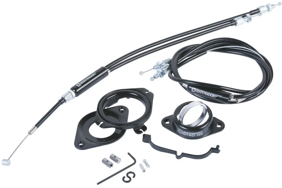 Odyssey delivers once again with this complete gyro set for use with Freestyle BMX bikes. This set has all you need to convert your premounted brakes to a gyro setup, except the actual brakes.
