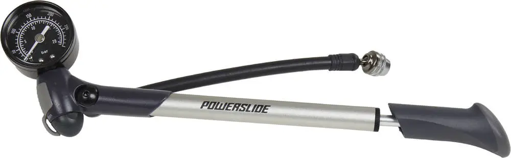 It has a threaded joint connected valve that is easy to use on Powerslide Nordic skates with air tire. This pump also is different from most normal air pumps due that it can pump air tires up to high enough pressure on around 6 bars/90 PSI.