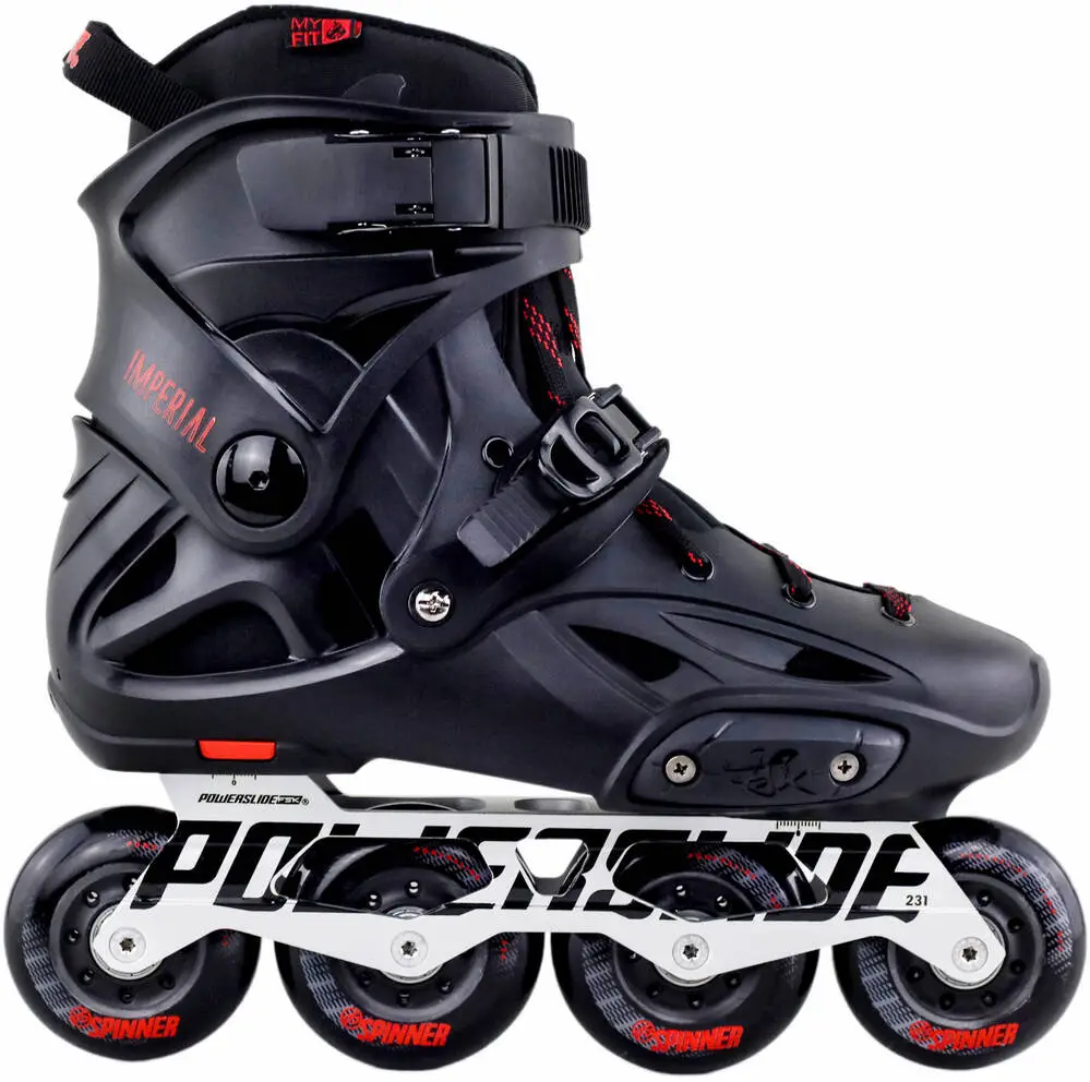 The Powerslide Imperial Special Edition freeskates have a really nice price-to-performance ratio. If you are looking for agile and maneuverable skates for slalom and urban freeskating, these skates could be for you. On these Powerslide freeskates, you will find a hard boot. So if good power transfer and support are something you are looking for, the hard boot construction will provide you with that. These skates will fit just right if you have slightly narrower feet.