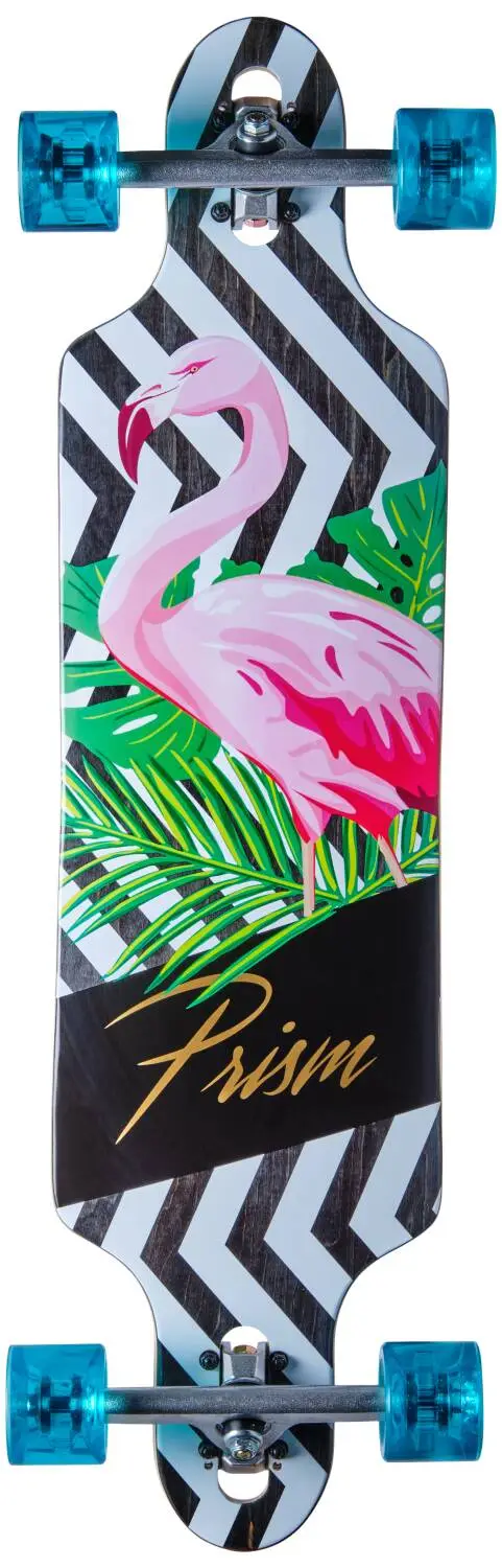 The setup is soft and forgiving to vibrations coming from the road, thanks to the big and soft 78A Prism wheels. Drop-through mounted Caliber trucks and Blood Orange bearings top of this nice longboard.