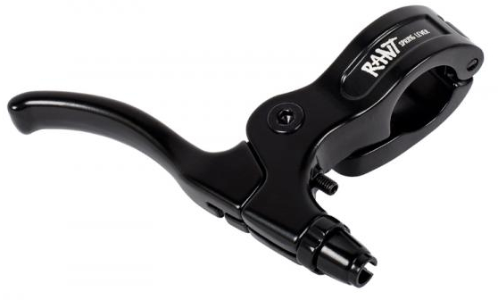 The Spring brake lever from Rant is a two-finger, medium range lever with a hinged clamp that makes it easy to install or remove again.