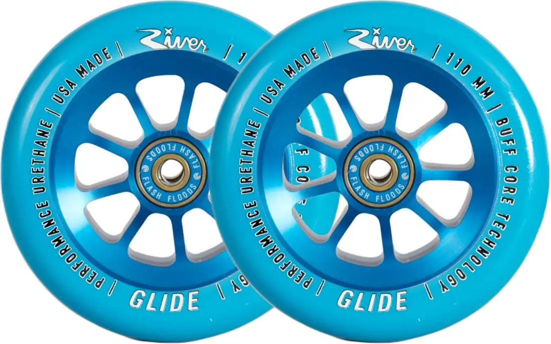 The River Naturals Glide Pro Scooter Wheels 2-Pack are 110mm responsive street wheels that will take your gliding game to the next level. The rubber compound on these bad boys is slightly softer, providing a nice glide and a smoother ride.