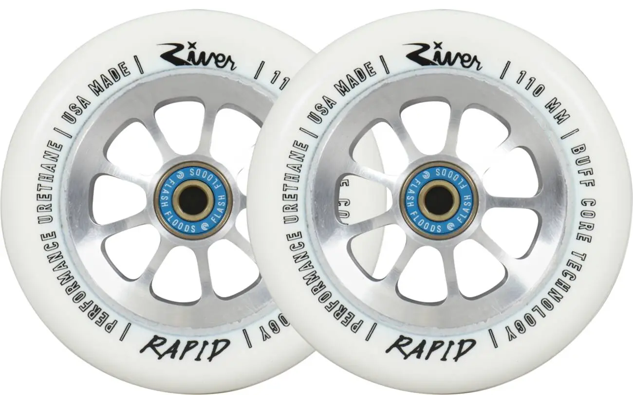 The River Naturals Rapid Pro Scooter Wheels 2-Pack are 110mm fast and responsive street machines that will unlock the next level of scootering for you.